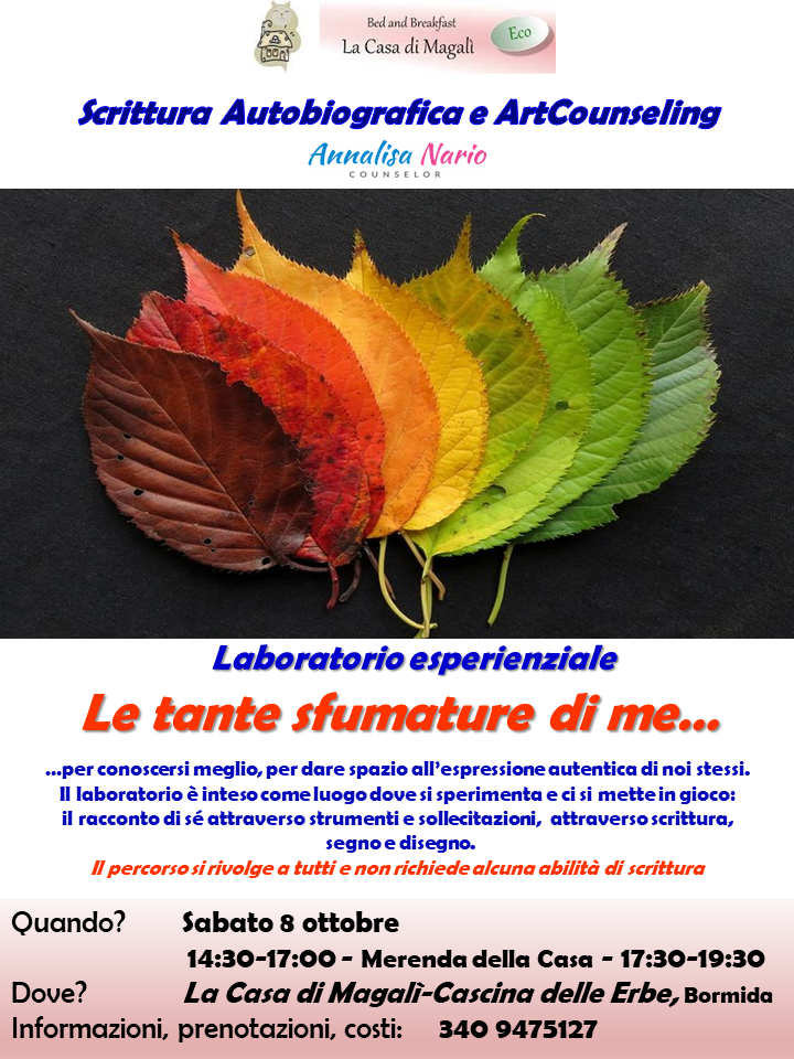 Ripartono i Laboratori di Scrittura Autobiografica & ArtCounseling! La scrittura è una forma di autoterapia, praticabile da tutti perché non