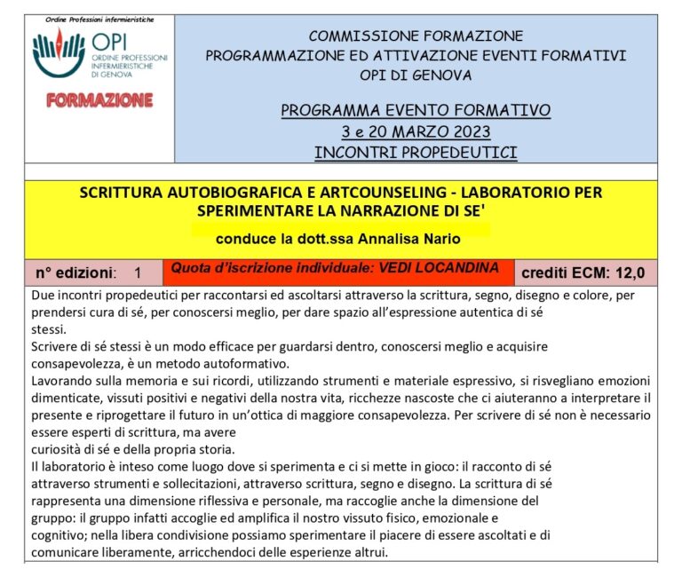Si è concluso lunedì il corso di formazione che ho tenuto presso l’Ordine degli Infermieri di Genova. E’ stata una