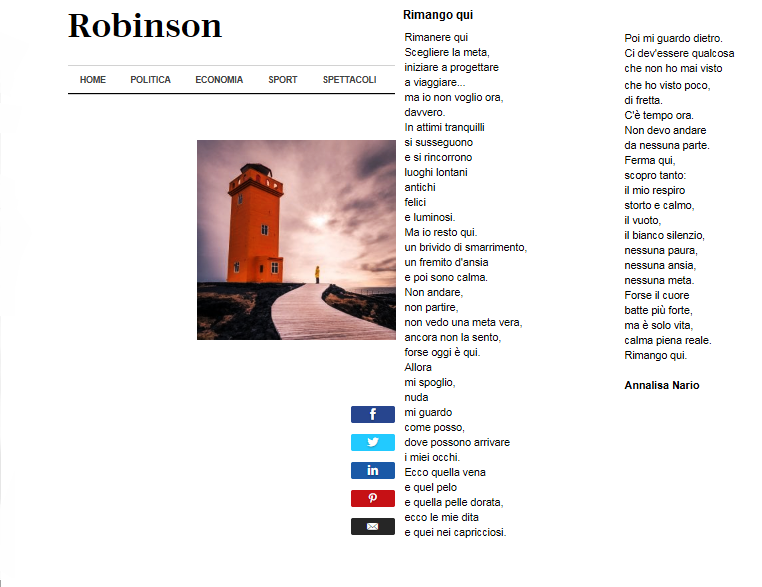 Ho partecipato a questa iniziativa di Robinson-Repubblica con una mia poesia: “Rimango qui” Questa estate, diversa da ogni altra: le