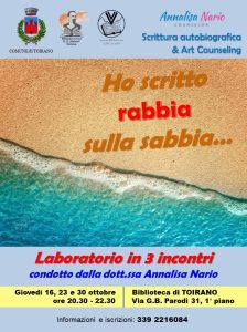 Ritorna la Scrittura Autobiografica con un nuovo ciclo di incontri: “Ho scritto rabbia sulla sabbia…” Passeggera, improvvisa, istintiva, repressa… Quella del momento (dei “cinque minuti”) o quella profonda, che accompagna e segue un trauma, un’ingiustizia, un tradimento, spesso albergando in noi per lungo tempo. Quella che non conoscevamo e abbiamo scoperto; quella che ci […]